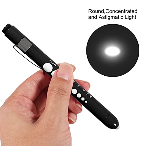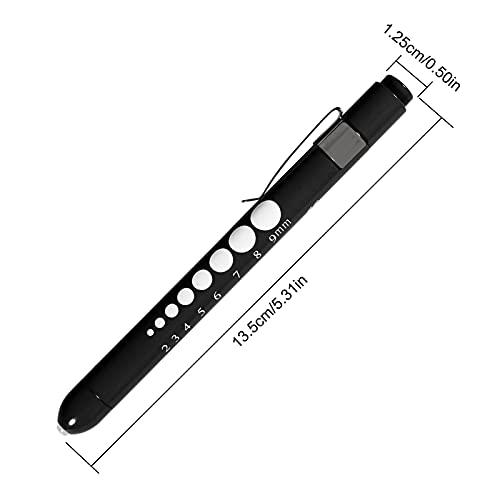 AOICRIE - قلم إضاءة طبي للتشخيص الطبي، مصباح يدوي ليد صغير قابل لإعادة الاستخدام، مصباح قلم طوارئ للأطباء والممرضين مع مقياس حدقة العين ومسطرة (أسود) من اي او اي سي ار اي اي