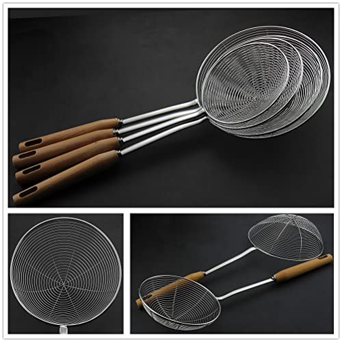 AOOSY - مقصوصة لتصفية شبكية (سبايدر) كبيرة جدًا مقاس 20 سم بمقبض خشبي، مغرفة تصفية من الفولاذ المقاوم للصدأ للطهي والقلي وتصفية الزيت من اوسي