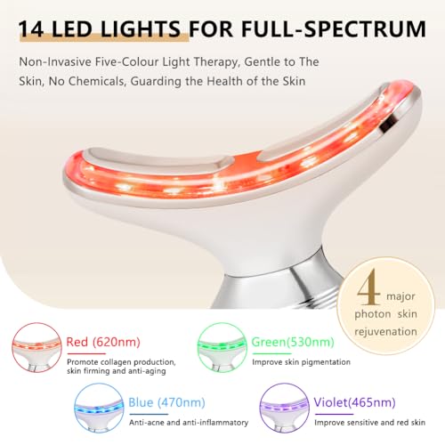 - 【علاج ضوئي بـ 5 ألوان】: يحتوي جهاز تدليك الوجه والرقبة الكهربائي ثنائي القطب على 14 مصباح LED كامل الطيف موزعة بالتساوي لضمان علاج ضوئي شامل للبشرة. يوفر سطح جهاز EMS 5 ألوان فاتحة لمشاكل البشرة المختلفة: الضوء الأحمر: مضاد للشيخوخة وتعزيز إنتاج الكولاجين؛ الضوء الأزرق: يهدئ الالتهابات ويهدئ البشرة الحساسة؛ الضوء الأخضر: يقلل من إنتاج الميلانين؛ الضوء الأرجواني: يصلح علامات حب الشباب وحب الشباب؛ الضوء الأصفر: يحسن الدورة الدموية والمرونة.