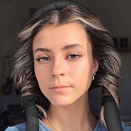 Aoshet - ادوات تجعيد الشعر للنوم بدون حرارة للشعر الطويل، شريط راس لتمويج الشعر مع 2 ربطة شعر ومشبك شعر، مجموعة ادوات تصفيف الشعر الحريرية الناعمة (اسود)