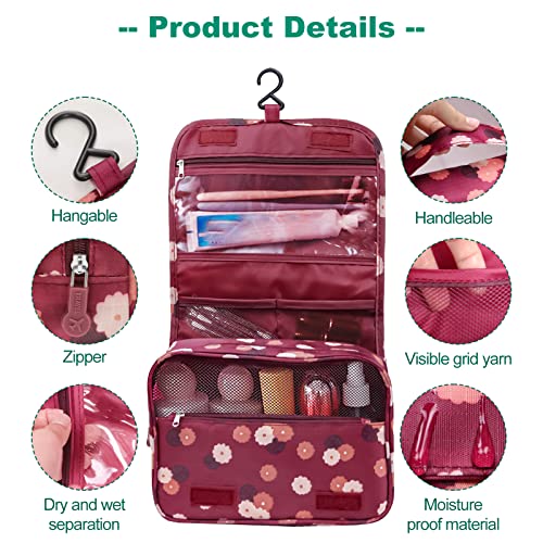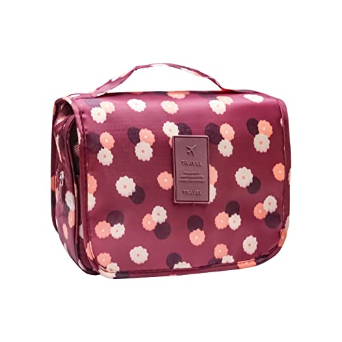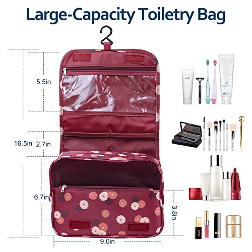Aosivm - شنطة مستحضرات تجميل كبيرة عصرية معلقة للنساء، شنطة سفر للمكياج مع مساحة تخزين لتنظيم المجوهرات واكسسوارات الحمام من ايه او اس اي في ام، أحمر نبيتي، كبيرة