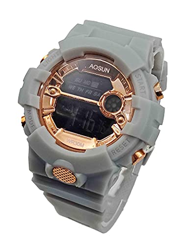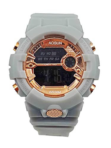 AOSUN - ساعة رياضية اولاد رقمي مطاط - 7854، بسوار أبيض