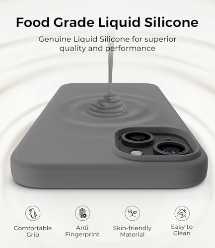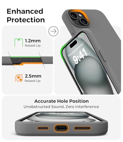 AOTESIER - جراب مصمم لموبايل آيفون 15 بلس، جراب حماية من السيليكون فائق النحافة ومضاد للصدمات مع [بطانة ناعمة مضادة للخدش من المايكروفايبر]، 6.7 بوصة، رمادي سبيس من اوتسير
