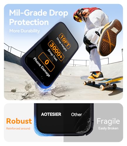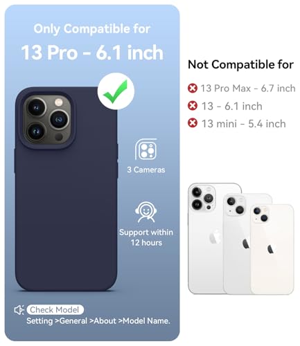 AOTESIER - جراب رفيع لموبايل آيفون 13 برو 6.1 بوصة من السيليكون السائل مع بطانة ناعمة مضادة للخدش وحماية عسكرية ضد الصدمات وحماية للكاميرا والشاشة من اوتيسير، أزرق (ميدنايت)