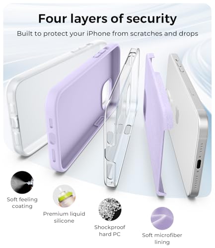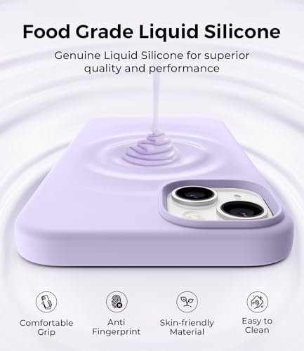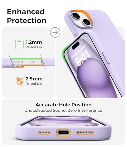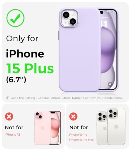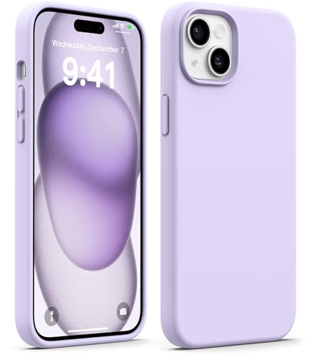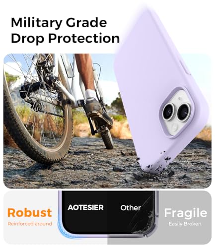 AOTESIER - جراب موبايل آيفون 15 بلس [حماية عسكرية ضد الصدمات] من سيليكون سائل مع [بطانة ناعمة مضادة للخدش] حماية للكاميرا والشاشة 6.7 بوصة من اوتسير، رفيع جدا (بنفسجي (كلاود موف))