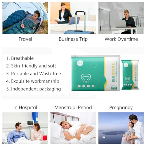 - متعدد الأغراض: يمكن استخدام الملابس الداخلية التي تستخدم لمرة واحدة للسفر والسبا ورحلات العمل والمشي لمسافات طويلة ورحلات شنط الظهر والتخييم والرياضات الخارجية والإقامة في المستشفى والنساء الحوامل قبل المخاض وفترة ما بعد الولادة وفترة الحيض وأي حياة يومية أخرى.