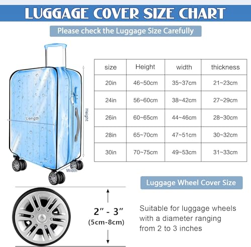 Aowin - اوين غطاء حماية للامتعة مع غطاء عجلة شفاف من بلاستيك PVC لحماية الامتعة اثناء السفر، مقاوم للماء والغبار ومضاد للخدش (30 انش)