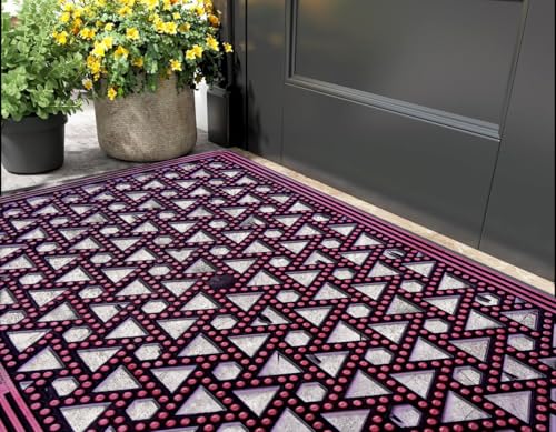 Generic - دواسة لباب الشقة بتصميم أشكال مثلثة ومستطيلة- موديل 7T - لمظهر جمالي وتنظيف فعال للأرضيات، مقاس 45 سم × 70 سم، لون وردي بينك