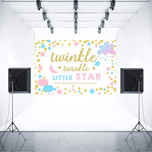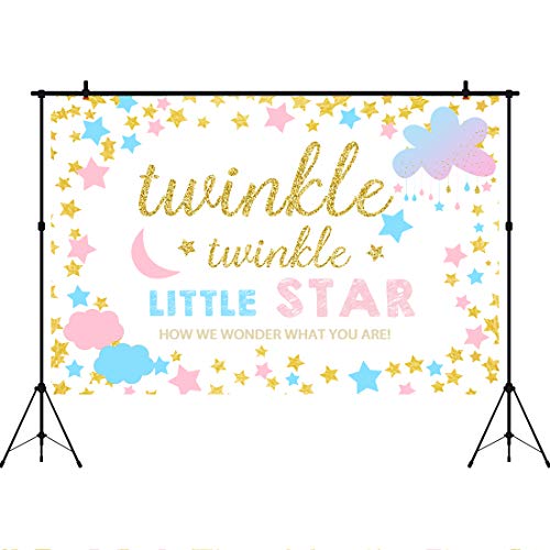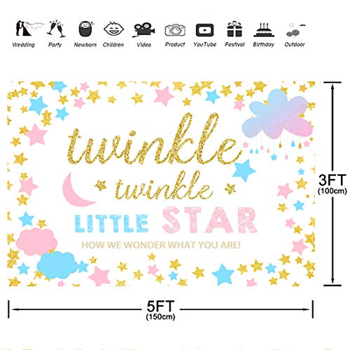 Aperturee - خلفية سبوع المولود بطبعة «Little Star»، خلفية صور حفل اكتشاف المولود بمقاس 5×3 قدم، خلفيات سحابية وديكورات تزيين طاولة كيك عيد الميلاد وملحقات الاستوديو من الفينيل بلون ذهبي وبينك من لي لي