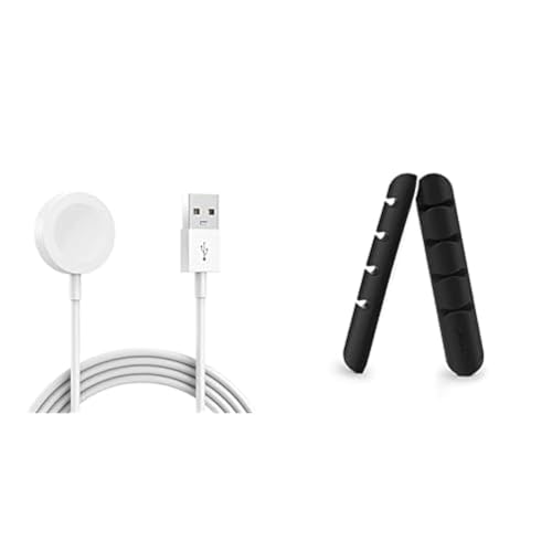 Apetiy - مجموعة كابل اساسية شاحن ساعة وكابل شحن لاسلكي مغناطيسي لسلك الشحن المحمول لساعة اي ووتش من ابيتي - لون أبيض + عبوتان مشابك تنظيم الكابلات على سطح المكتب - أسود