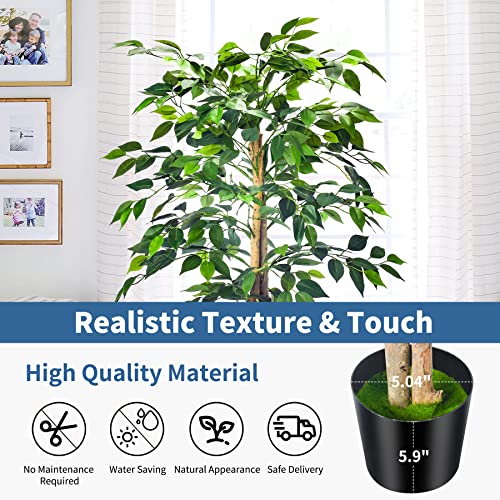 Aphighjoy - نباتات صناعية من شجر اللبخ الصناعي - شجرة لبخ الحريرية مع أوراق واقعية وجذع طبيعي لديكور المنزل وغرفة المعيشة والبلكونة (1.2 متر، عبوة من قطعة واحدة)