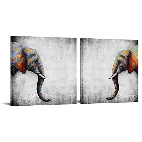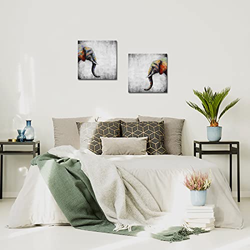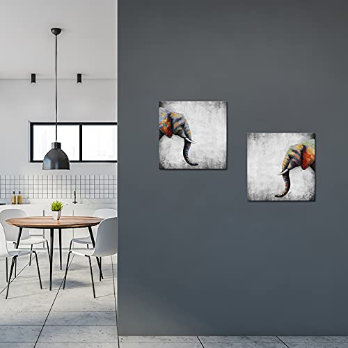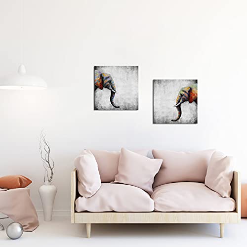 Apicoture - تابلوه حائط قماش برسمة فيل افريقي بري من البايكوتيور، لوحة فنية باطار جاهزة للتعليق مقاس 16×16×2 بوصة، رمادي