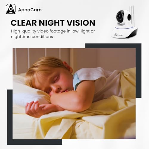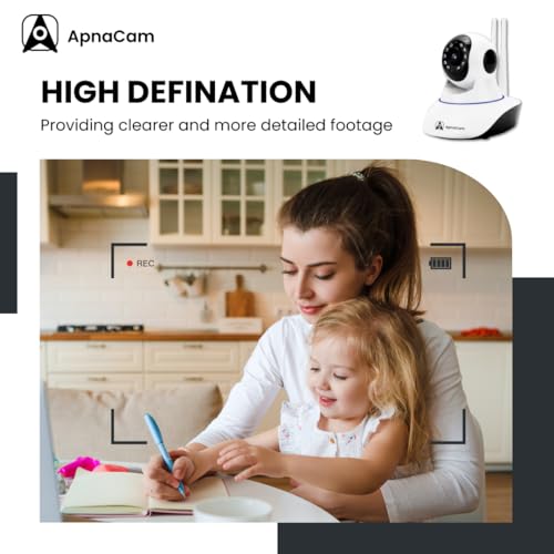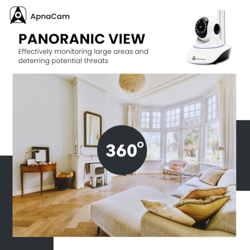 ApnaCam - كاميرا مراقبة متعددة من ابناكام | واي فاي ذكي داخلي | Ptz 360 درجة | رؤية ليلية | كشف الحركة | منبه مدمج | تسجيل بطاقة SD | معايرة | لاسلكي أبيض