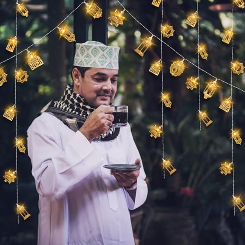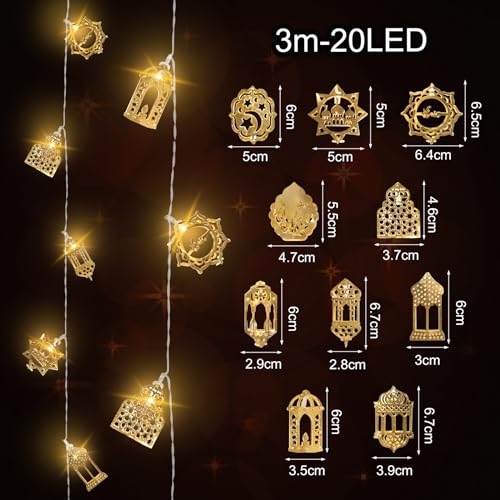 APODESS - مصابيح رمضان خيالية بطول 3 متر من ابوديس، 20 مصباح LED بتصميم نجوم وأقمار للزينة والعيد المبارك، أضواء رمضان كريم، أضواء زينة للنافذة، أضواء فانوس رمضان لغرفة النوم والمنزل