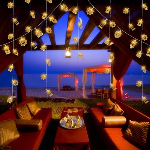 - الديكور الداخلي والخارجي: مصابيح رمضان هذه هي الديكور المثالي لمهرجان السكر ويمكن تعليقها على النوافذ أو الأبواب أو الأسوار أو في غرف النوم أو السكن الجامعي أو على الحوائط أو خارج المنزل لتعزيز الأجواء. يمكنك استخدام الأضواء الخيالية للمساكن الجامعية لتزيين منزلك أو حديقتك. يمكنك أيضًا استخدامها لتزيين حفل الزفاف أو الذكرى السنوية أو حفلة عيد الميلاد.