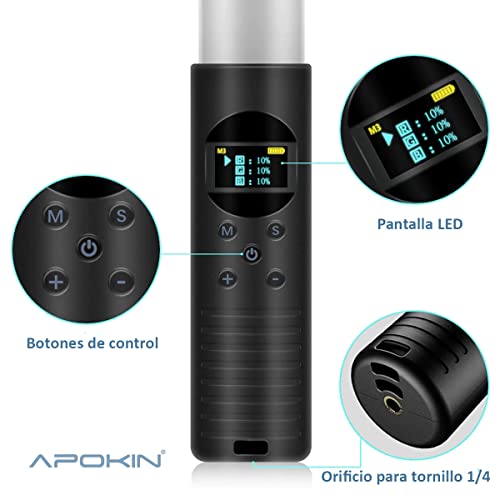 APOKIN - عصا اضاءة LED RGB 2500-8500 كلفن مع 14 تاثير اضاءة وريموت كنترول وشنطة من ابوكين