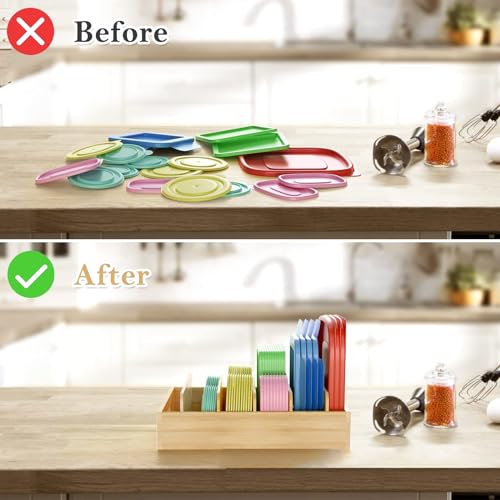 - منظم أدراج المطبخ نظيف ومرتب: حرر حمامك ومكتبك وغرفة الأطفال والمطبخ والمكتب من الفوضى مع حامل الأغطية الأنيق هذا. ضع أغراضك في المنظم الخشبي للحفاظ على الخزانات والأدراج وأسطح الطاولات أنيقة ومنظمة.