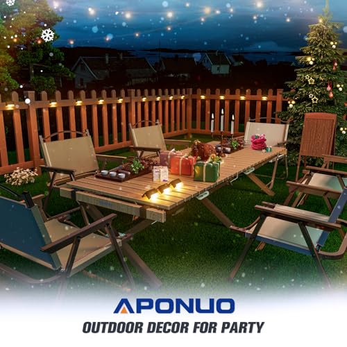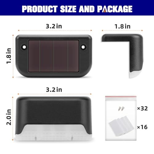 APONUO - مصابيح سطح تعمل بالطاقة الشمسية من 16 قطعة من ابونو، لمبات ليد خارجية مقاومة للماء للسياج والفناء والسلالم وممر الحديقة والسلالم والأسوار (أبيض دافئ) (16 قطعة (أسود))