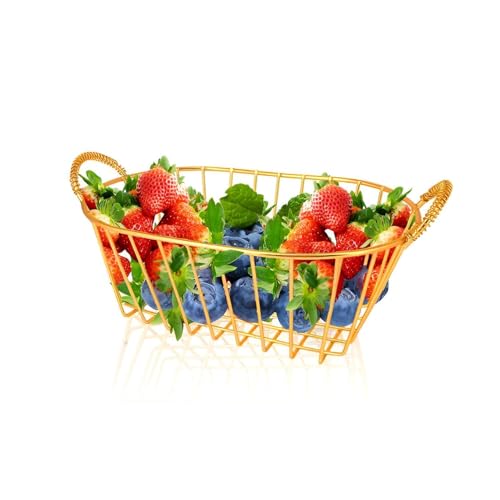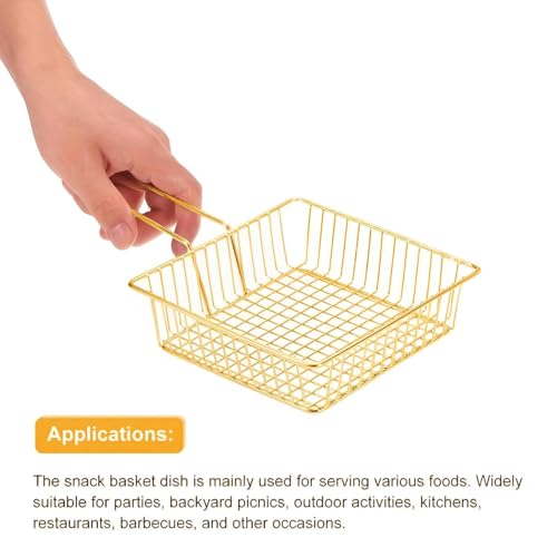 Generic - سلة مقبلات - قطعة تقديم ذهبية صغيرة فاخرة للبطاطس المقلية والاجنحة وحلقات البصل، رائعة لتقديم الفواكه او البسكويت او الوجبات الخفيفة في الطعام الحديث او البيئات المكتبية المريحة (موديل 2)