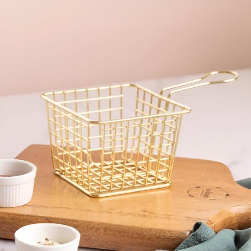 Generic - سلة مقبلات - قطعة تقديم ذهبية صغيرة فاخرة للبطاطس المقلية والاجنحة وحلقات البصل، رائعة لتقديم الفواكه او البسكويت او الوجبات الخفيفة في الطعام الحديث او البيئات المكتبية المريحة (مودرل 1)