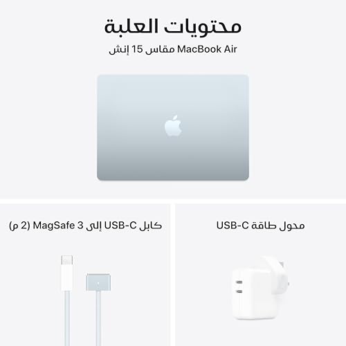 Apple - جهاز ماك بوك اير 2025 (15 بوصة، شريحة ابل M4 مع وحدة معالجة مركزية 10 أنوية ووحدة معالجة رسومات جرافيكية 10 نواة، ذاكرة موحدة 16GB، 256GB) من آبل - أزرق سماوي، إنجليزي
