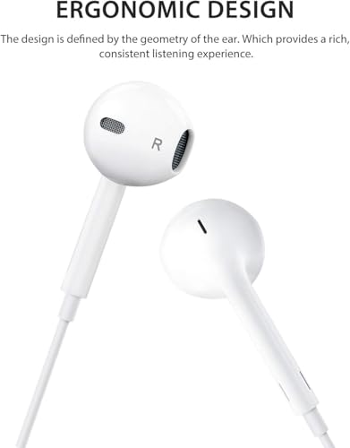Everdigi - سماعات أذن عازلة للضوضاء مع وصلة لايتنينج (ميكروفون مدمج وتحكم في مستوى الصوت) [معتمدة من ام اف اي] لآبل آيفون 14/13/12/11/SE/X/XR/XS/8/7، عبوة واحدة