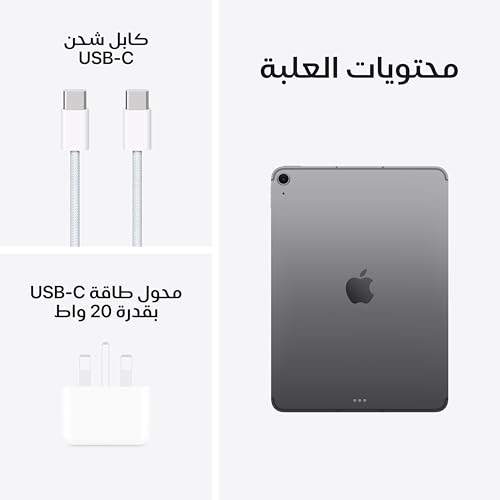 Apple - جهاز آبل اي باد اير 11 بوصة بشريحة M3 بتقنية آبل انتليجنس وشاشة ليكويد ريتينا تخزين 128 جيجا كاميرا أمامية/خلفية 12 ميجابيكسل واي فاي 6E+ جيل خامس 5G تاتش اي دي تشغيل بطارية طوال اليوم رمادي (Space
