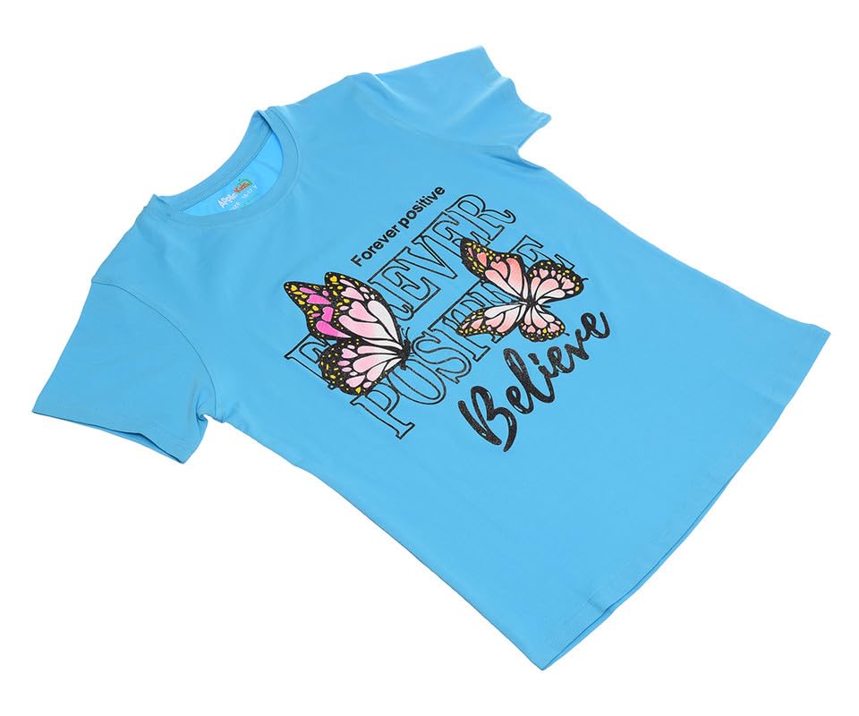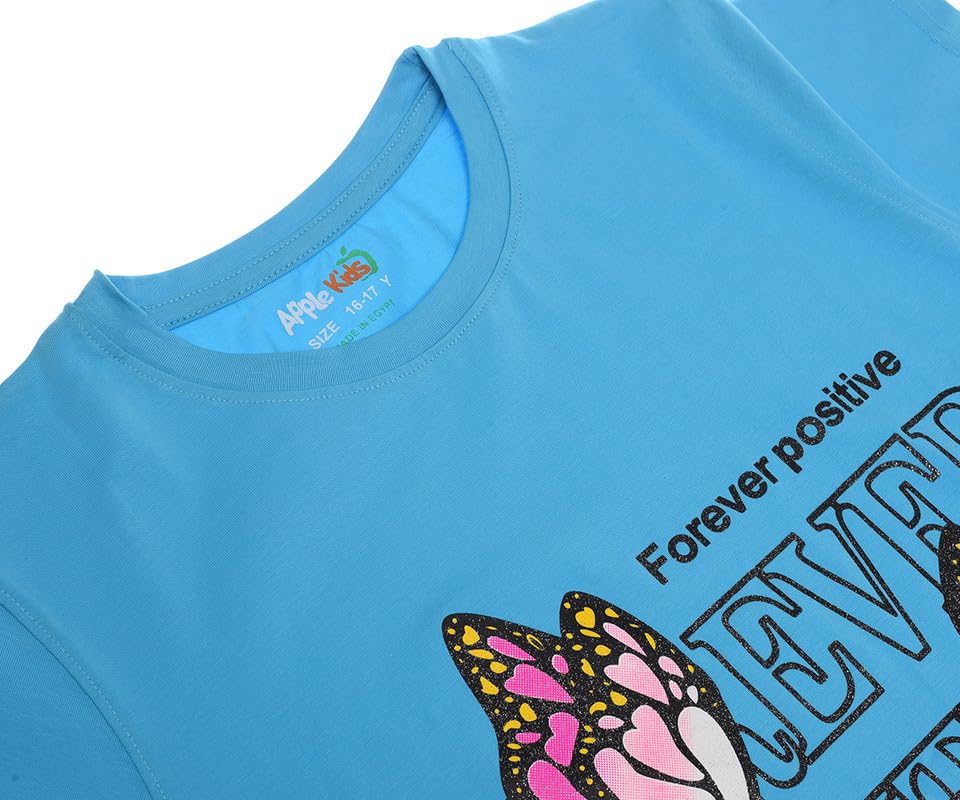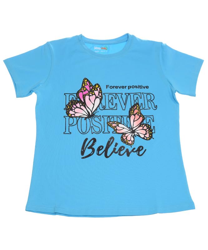 Apple Kids - تيشرت قطن بنصف كم مطبوع عليه عبارة Forever Positive للبنات من ابل