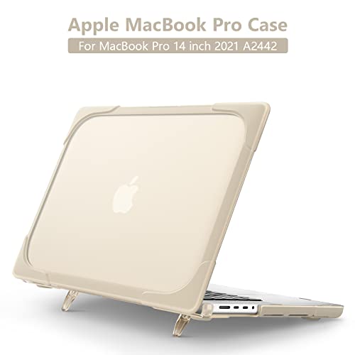 Generic - جراب حماية كامل من مواد مزدوجة لموبايل ابل ماك بوك برو 14.2 بوصة - 2021 A2442 - كاكي، بلاستيك سيليكون