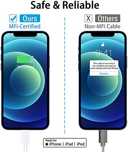 - [كابل لايتنينج للشحن السريع] سلك نحاسي رباعي النواة عالي الجودة يعزز من سرعة الشحن ونقل البيانات لشواحن ابل. اشحن موبايل ايفون 12 من 0% إلى 50% خلال 30 دقيقة، مما يضمن الحصول على وقت شحن أسرع مع الحفاظ على كابل شاحن ايفون الخاص بك آمنًا تمامًا.