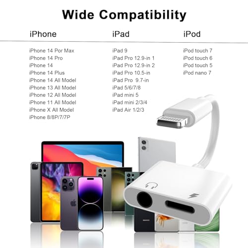 - 【توافق مثالي】تم تصميم محول سماعة الرأس للآيفون هذا خصيصًا لمحبي لآيفون. مناسب لموبايل آيفون 14/14 بلس/14 برو/14 برو ماكس/آيفون 13/13 برو/13 برو ماكس/12/12 برو/12 برو ماكس/11/11 برو/11 برو ماكس، آيفون XR/XS/XS ماكس/اكس، آيفون 8/8 بلس، آيفون 7/7 بلس 6/6 بلس ايبود/اي باد وجميع أنظمة iOS. يمكن استخدام هذا المحول لسماعات آيفون 14 مع أي جهاز أو وصلة تحوي مدخل 3.5 ملم.