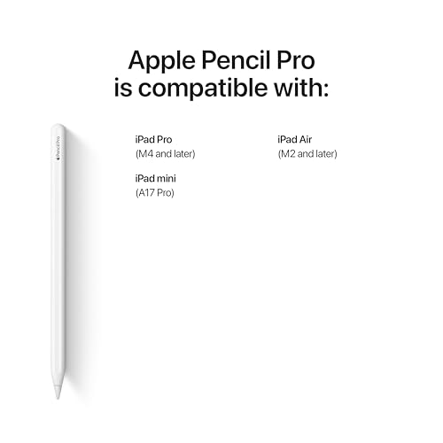 - التوافق - يعمل قلم ابل Pencil Pro مع ايباد برو 13 انش (M4) وايباد برو 11 انش (M4) وايباد اير 11 انش (M2 وM3) وايباد اير 13 انش (M2 وM3) وايباد اير 13 انش (M2) وايباد اير 11 انش (M2) وايباد ميني (A17 Pro).