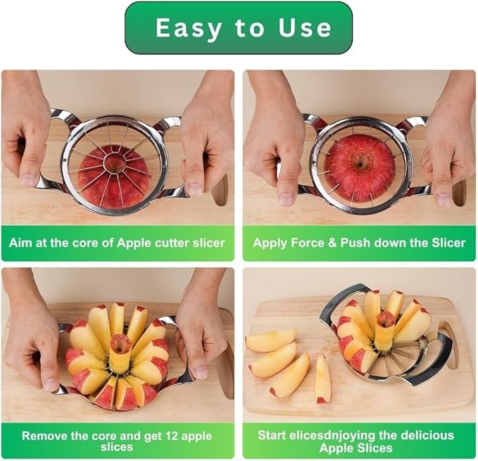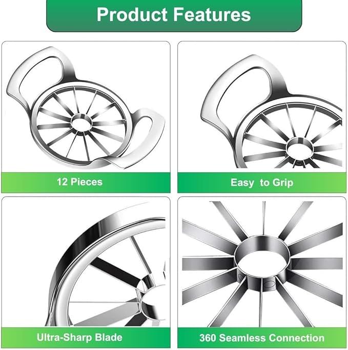 - إعداد سريع للوجبات الخفيفة: اضغط مرة واحدة وستحول قطاعة التفاح المصنوعة من الستانلس ستيل هذه التفاح بالكامل إلى 12 شريحة متساوية مع إزالة القلب بنفس الحركة - فوضى أقل، ووقت أطول لتناول الشاي.
