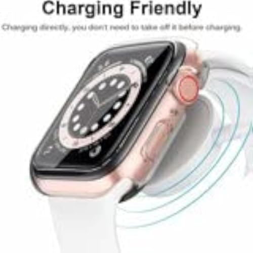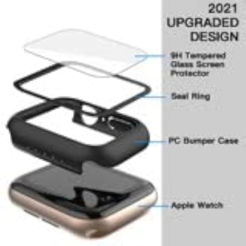 N\A - شاشة حماية لساعة ابل ووتش 7 من الزجاج المقوى بجراب كامل البولي كربونات الصلب اي سلسلة اسود 41 ملم تيمبرد جلاس