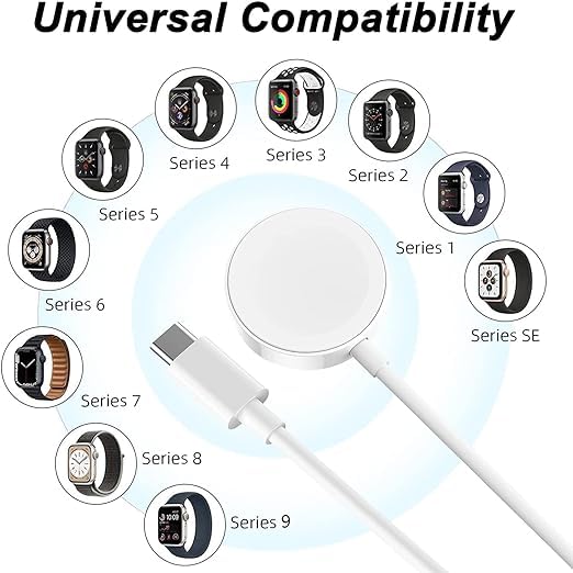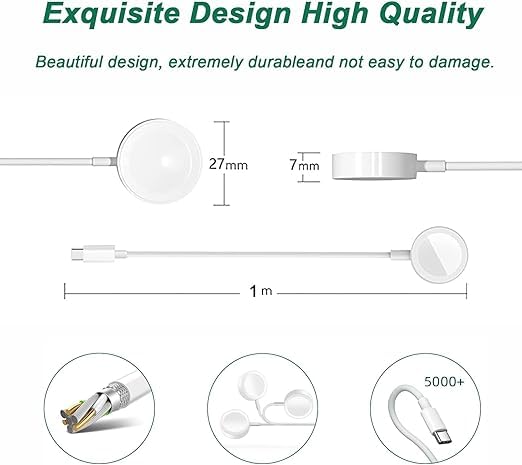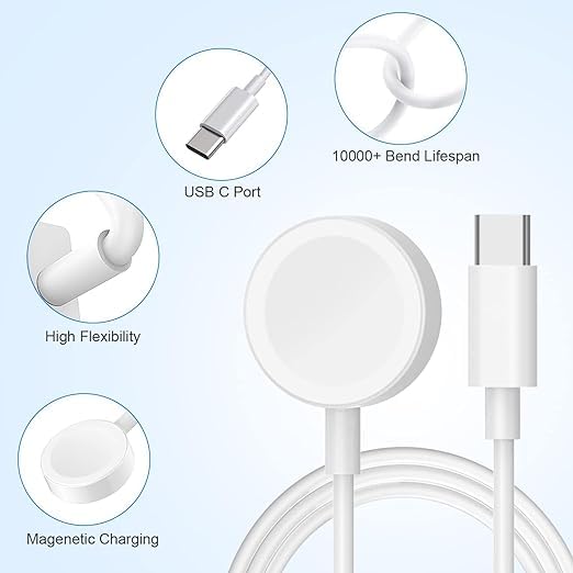 - متوافق على نطاق واسع: كيبل شحن مغناطيسي لشاحن ساعة ابل متوافق مع جميع موديلات اي ووتش سلسلة 9/8/7/6/5/4/3/2/1/SE/الترا 2/الترا. كابل USB-C خفيف الوزن ومحمول، لتلبية استخدام المشاهد المختلفة في الحياة اليومية (طول الكابل: 3.3 قدم/1 متر).