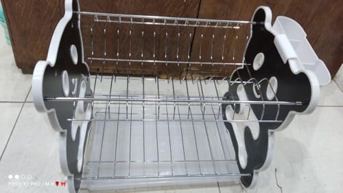 Generic - رف تجفيف عصري من طبقتين من الخشب والمعدن مع خطافات عملية ومنظم جانبي يجمع بين العملية والجمال