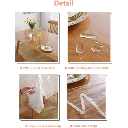 - ✅【سميك وشفاف وصديق للبيئة】مقاوم للماء والغبار، بتصميم شفاف بلون كريستالي واضح. غطاء الطاولة الزجاجي هذا مصنوع من بلاستيك بي في سي واكريليك شفافة عالية الجودة، متينة وصديقة للبيئة. مفرش طاولة بلاستيكي لطاولة غرفة الطعام يحمي طاولتك وأسطح الأثاث من الخدوش والكشوط والبقع.