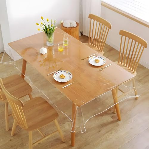 Aputue - مفرش طاولة شفاف واقٍ بلاستيكي للطاولات بمقاس 1.80×1.40 م، قابل للمسح، مستطيل الشكل. مقاوم للماء والزيت والبقع، مصنوع من بلاستيك بي في سي وفينيل عالٍ الجودة للمطبخ وطاولات الطعام والمكاتب من ابوتو