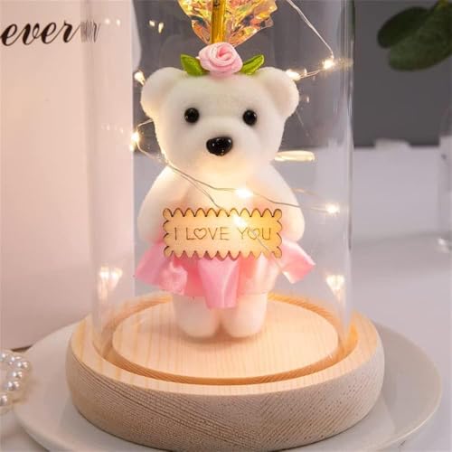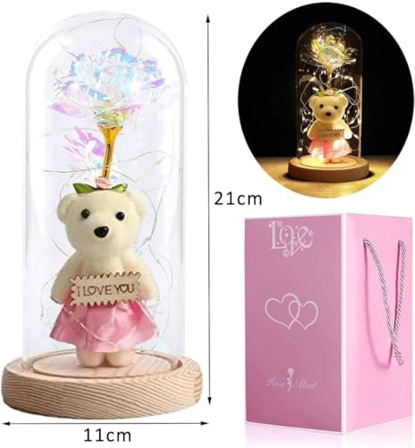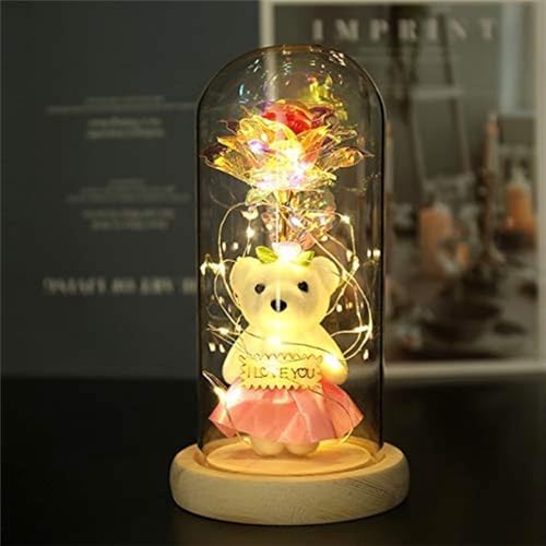 Aputue - وردة جالاكسي، وردة خالدة في قبة زجاجية مع أضواء ليد متلألئة، زهرة صناعية للنساء،لعيد الميلاد للام والزوجة والإبنة، ديكور منزلي أنيق من ابوتو