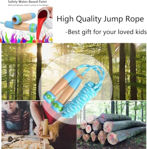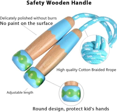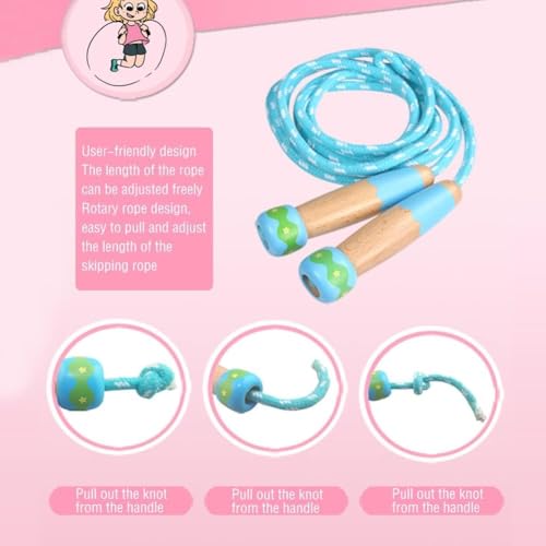 Aputue - حبل قفز للاطفال من ابوتو، حبل قفز قابل للتعديل مع مقبض خشبي، حبل قفز للاطفال لتدريب اللياقة البدنية والتمارين الخارجية