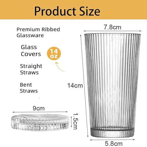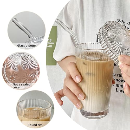 - 🎁【مادة زجاجية】هذا الكوب الزجاج المضلع مع غطاء وشفاطة مصنوع من مواد زجاجية صحية وعالية الجودة، خالية من الرصاص والبيسفينول أ. إنها تحفة فنية فاخرة ومضيئة وغير سامة. هذه الأكواب الزجاج المخططة متينة وشفافة للغاية وآمنة للاستخدام اليومي.