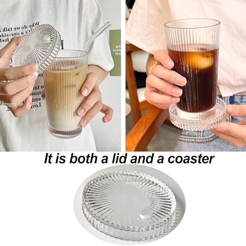 - 🎁【تصميم خطوط عمودية】تم تصميم الكوب الزجاجي المزود بغطاء بخطوط عمودية من أجل البساطة والجمال. لمسة نهائية خارجية بخطوط عمودية مع ملمس فاتن جميل، لمسة نهائية لامعة من الداخل. يحتوي كل مج قهوة زجاج على غطاء زجاج عملي يمكن استخدامه كقاعدة أكواب.