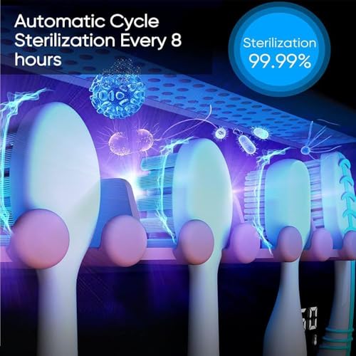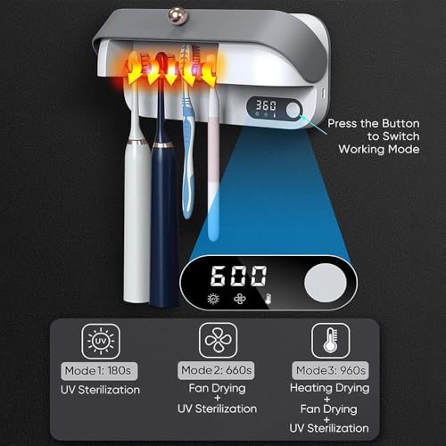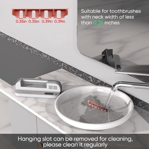 - 【حامل معقم فرشاة أسنان أنيق】يكرس المصممون المحترفون جهودهم لتصميم كل التفاصيل، والزوايا المستديرة والناعمة، وصناعة الأسطح الرقيقة. لا يقوم معقم وحامل فرشاة الأسنان هذا بتعقيم فرش الأسنان فقط ويحافظ على سطح الطاولة مرتبًا. فتحة التعليق المطورة تجعلها متوافقة مع 99% من فرش الأسنان الكهربائية واليدوية.