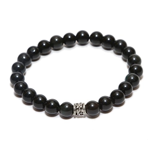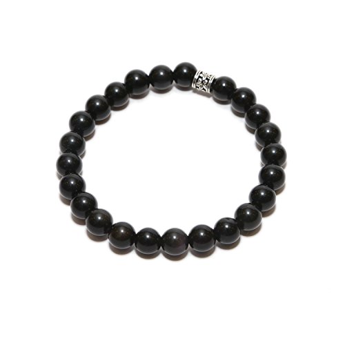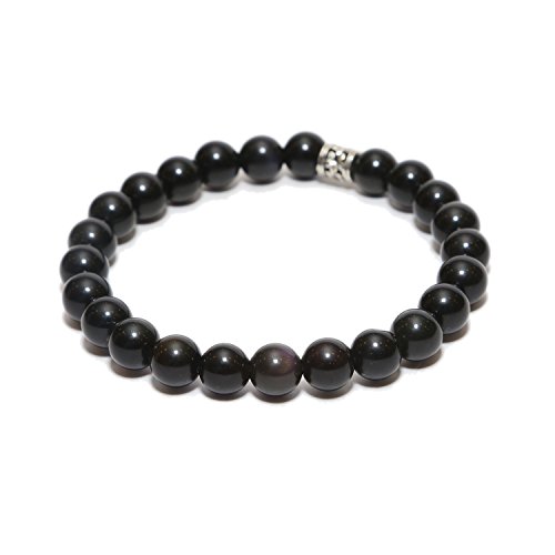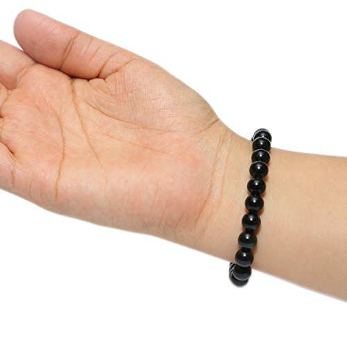 Aqeeqee - سوار من الاحجار الكريمة الطبيعية الزجاج البركاني الاسود ازالة السلبية للجنسين اكيكي للشفاء ريكي فاستو 7 انش احجار كريمة كريستال علاجي زجاج بركاني
