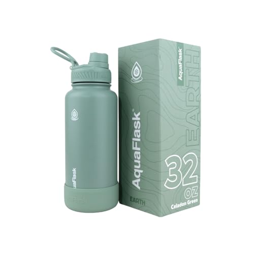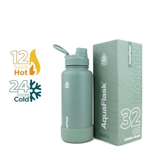 AquaFlask - زجاجة مياه ايرث معزولة بتفريغ الهواء سعة 950 مل من اكوا فلاسك، لون سيلادون جرين