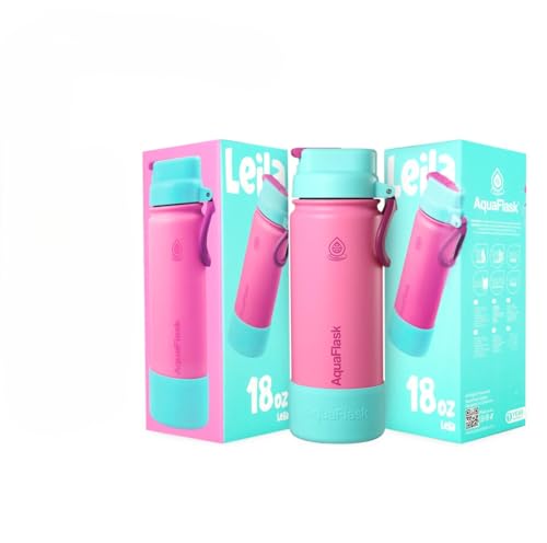 AquaFlask - زجاجة مياه تريتان خالية من البيسفينول أ بغطاء مزود بشفاطة قابلة للطي من اكوا فلاسك، سعة 530 مل، لافلي ليلى (لبني وبنفسجي)