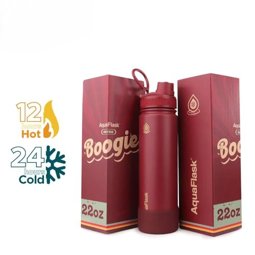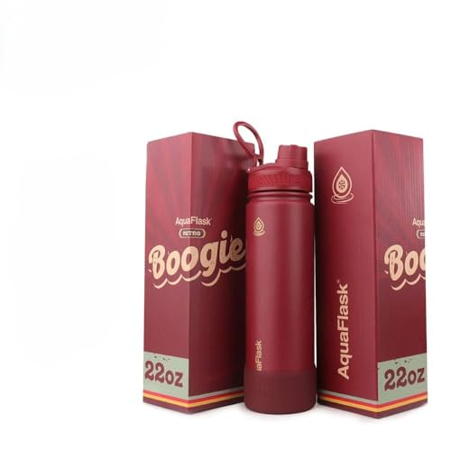 AquaFlask - كوب سفر بوجي بتصميم ريترو، زجاجة مشروبات سعة 650 مل من اكوا فلاسك، أحمر نبيذي، Af-V96