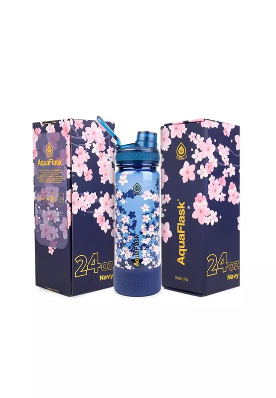 AquaFlask - زجاجة مياه فلاسك تريك ساكورا من التريتان خالية من البيسفينول أ بسعة 710 مل بلون كحلي أنيق من اكوا فلاسك