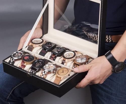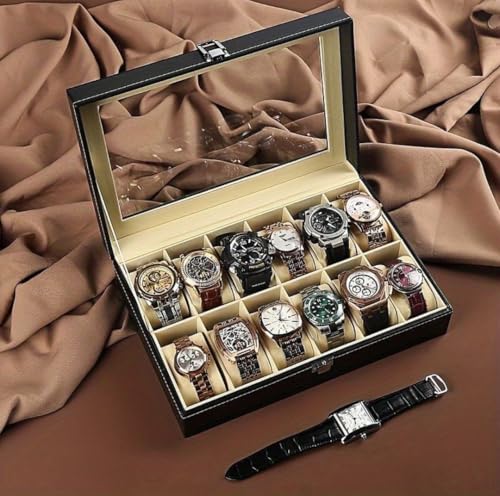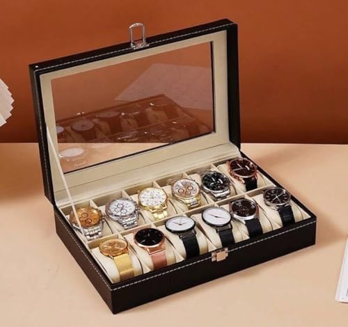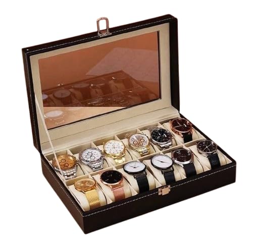 Generic - بوكس ساعات مجوهرات صندوق تخزين و منظم كواليتي عالي و خااامة جلد AR (12 خانه)
