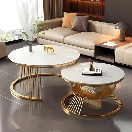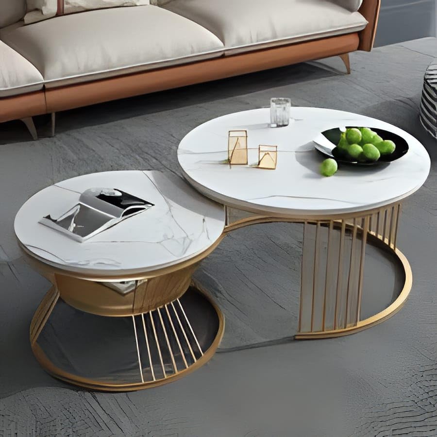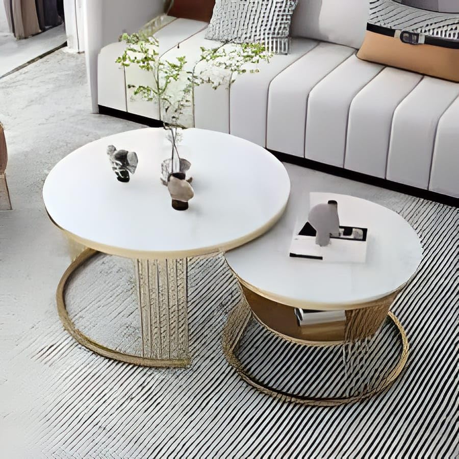 AR Corner - طقم طاولة مركزية من فولاذ مقاوم للصدأ من ايه ار كورنر F033 من قطعتين، ذهبي/ أبيض